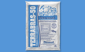 Ração: Misturar 1kg de *TERRABRAS-50 por tonelada de raçã